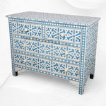 Abstract Bone Inlay Chest of 4 Drawers Blue