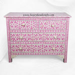 Abstract Bone Inlay Chest of 4 Drawers Pink