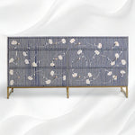 Floral Motif Bone Inlay is the timeless jewel in our Inlay Furniture and Accessories Collection. The gorgeous combination of Grey and white has everlasting appeal and creates a relaxed bohemian elegance in your home. This versatile chest of drawers can be used in a living room, bedroom, entry or hallway.