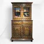 Discover timeless elegance with our vintage Anglo-Indian teak wood bone inlay crockery unit. Crafted with meticulous attention to detail, this exquisite piece seamlessly blends British colonial charm with traditional Indian craftsmanship. Perfect for showcasing your finest crockery, its intricate bone inlay design and durable teak wood construction make it a stunning addition to any home décor. Explore our collection and bring a touch of history and heritage to your living space today.