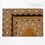 Bone inlay has a natural, earthy look with a matte finish, while Mother of Pearl inlay looks shiny and elegant with its iridescent glow. Both materials can be used for various patterns and can be applied to any furniture or homeware items in our online store.