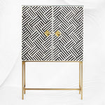 Featuring intricately patterned bone inlay and defining brass hardware, our show stopping Optical Inlay collection exudes unparalleled craftsmanship. Artful and functional at once, this bar cabinet makes a striking statement in any home.