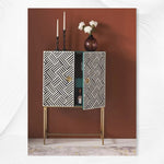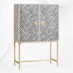 # Handcrafted bone inlay bar cabinet reinforced with tropical hardwood