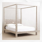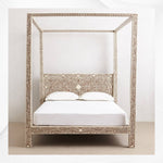 Since the days of ancient Egypt, craftsmen have been using inlaid bone to decorate furniture surfaces, and for good reason: it embodies a natural sheen that adds instant luxury to any space. Handcrafted using the same centuries- old technique, this four poster bed is a classic piece to build a room around.