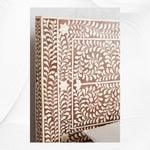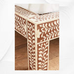 Bone inlay has a natural, earthy look with a matte finish, while Mother of Pearl inlay looks shiny and elegant with its iridescent glow. Both materials can be used for various patterns and can be applied to any furniture or homeware items in our online store.