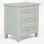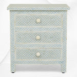 Our bone inlay Bedside will compliment existing bedroom furnishings and add that unique character to your peaceful space! Consisting of 3 drawers for ample bedside storage, It is lovingly created with the use of camel bone and resin to cleverly design whichever exquisite pattern for you.