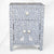 Bone inlay provides a natural, matte texture, while Mother of Pearl inlay gives a shiny, elegant look with its iridescent finish. Both materials are available in various patterns on all furniture and homeware items in our online store.