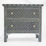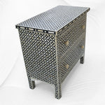 Designed for Luxury Handicrafts by a Young Lady Interior designer from Italy, this handcrafted Bedside Table is Ivory Bone Inlaid with Black colored resin. The geometric design makes it awesome.