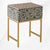 A scroll vine bone inlay nightstand in black is a luxurious and refined piece of furniture designed to enhance the ambiance of a bedroom or living area. This type of nightstand is characterized by its intricate bone inlay patterns, featuring delicate scroll and vine motifs meticulously crafted onto the surface.