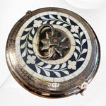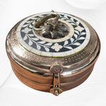 This Brass and Bone Inlay Chapati Box will hold your treasures for years to come. This stunning box can be used as a lovely decorator accessory in a living or dining room or in a bedroom. The stylish bone inlay pattern gives this treasure box an unusual finish that would look beautiful in many décor styles and especially in a Hampton's themed décor, Shabby Chic or Boho Chic style. Traditionally Chapati Boxes are used to store flatbread and indeed they would make a gorgeous serving ware item. And you can also store any manner of trinkets and odds and ends in these beautiful boxes.