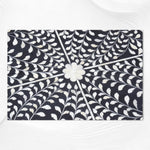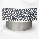 Bone inlay offers a natural, matte look, while Mother of Pearl inlay is elegant and shiny with an iridescent effect. These materials can be used in any pattern and applied to all types of furniture or homeware items in our online store.