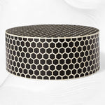 Our Bone Inlaid Round Coffee Table’s intricate honeycomb pattern is inlaid by hand for a modern take on traditional techniques. We rounded things out with a circular tabletop that smooths out its geometric edges and offers a place to put up your feet in style.