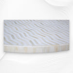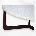Bone inlay provides a natural, matte texture, while Mother of Pearl inlay gives a shiny, elegant look with its iridescent finish. Both materials are available in various patterns on all furniture and homeware items in our online store.