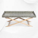 A stunning coffee table with Oak Wood Legs, featuring a bone inlay pattern in geometric design with boldly cultured resin background. It would be perfect to show off some bold style in your Living Room with this handcrafted art from India.