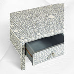 Bone inlay has a natural, earthy look with a matte finish, while Mother of Pearl inlay looks shiny and elegant with its iridescent glow. Both materials can be used for various patterns and can be applied to any furniture or homeware items in our online store.