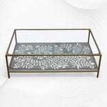 Bone inlay gives a natural, rustic look with a matte finish, while Mother of Pearl inlay shines beautifully with its iridescent glow. Both materials can be used in different patterns on any furniture or homeware items in our online store.