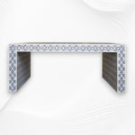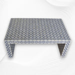 A bone inlay center table in grey is a stylish and sophisticated piece of furniture that combines artistry and functionality. This type of table typically features a handcrafted design where pieces of bone are meticulously inlaid into the surface to create intricate patterns and designs. The grey color adds a contemporary touch, making it versatile enough to complement various interior styles, from modern to traditional.