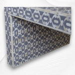 Bone inlay offers a natural, matte look, while Mother of Pearl inlay is elegant and shiny with an iridescent effect. These materials can be used in any pattern and applied to all types of furniture or homeware items in our online store.