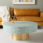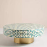 Since the days of ancient Egypt, craftsmen have been using inlaid bone to decorate furniture surfaces, and for good reason: it embodies a natural sheen that adds instant luxury to any space. Handcrafted using the same centuries-old technique at Luxury Handicrafts, this room-anchoring piece captures the essence of inlay work with a reiterative bone inlay design atop a cylindrical brass base.