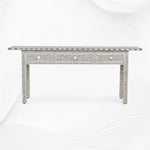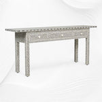 # Size: 198 (Length) X 45 (Width) X 76 (Height) Centimeters # Hand-inlaid original camel bone # Beautifully cut and crafted bone into Geometric Pattern # Ample Storage with 3 Fully functional & useful drawers...