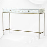 # Handcrafted Slate Blue bone inlay desk with Polished brass base and hardware