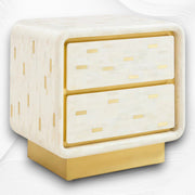Exquisitely crafted, our Casablanca collection introduces a modernized take on traditional craft-based bone inlay and marquetry techniques. Expert craftspeople team of us clad our clean geometric brick laid pattern, featuring a mix of ethically sourced, hand-selected bone and solid brushed brass bricks, onto wood cabinets and bases. Bullnose edges and soft curves lend a fluid feel, doors with reveals feel totally today, and brass inclusions add a hint of shine.