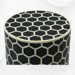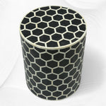 Our Bone Inlaid Round Side Table is inlaid by hand to create an intricate honeycomb pattern. On top of that, we added black color to smooth things out, making it an ideal spot to rest a drink, a book or both.