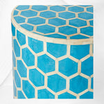 Our Bone Inlaid Round Side Table is inlaid by hand to create an intricate honeycomb pattern. On top of that, we added Turquoise color to smooth things out, making it an ideal spot to rest a drink, a book or both.