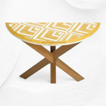 A super awesome side table, featuring latest “V’ pattern in bone inlay with yellow colored resin. It would be perfect as a side table in bright colored area. This item comes completely assembled, simply show...