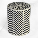 # Size: 35 (Diameter) X 45 (Height) Centimeters # Hand Made In India With Quality Bone # Intricate hand carved bone detail in Chevron Design # Can be used as Side Table, Stool or Decorative...