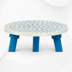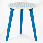 A super-cute side table, features a polka dot bone inlay pattern with brightly colored resin background, and matching painted legs. It would be perfect as a lamp table in a child’s room, or other fun space. This item comes flat packed, meaning the shipping cost is minimal, and you will simply need to screw the legs into the top for assembly.