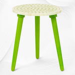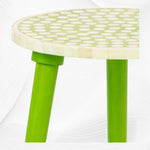 A super-cute side table, features a polka dot bone inlay pattern with brightly colored resin background, and matching painted legs. It would be perfect as a lamp table in a child’s room, or other fun space. This item comes flat packed, meaning the shipping cost is minimal, and you will simply need to screw the legs into the top for assembly.