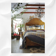 A hand-embossed pattern on gleaming brass lends a rustic sensibility to this striking piece, making it fit for both traditional and contemporary bedrooms.