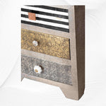This piece is more beautiful than it looks in picture. This piece will be handcrafted and exported from India when an order is placed. Drawers are made of Bone, Brass, Antique Metal with different knobs on each drawer.