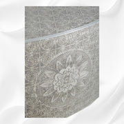 Topped with a luxurious surface of hand embossed silver metal sheets, this stately coffee table features an eye catching design embossed on silver metal. Key Features: # Size: 45 (Diameter) X 15 (Height) Inches #...