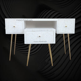 Bright, bohemian and filled with personality, the scroll vine bone inlay bedside is bound to become the main attraction of your room. Featuring strong Eastern inspiration with its bone inlay finish and iron legs with gold polis...