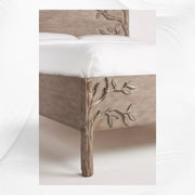 - Hand-Carved Detailing: The headboard and footboard feature ornate, nature-inspired carvings, adding an artistic and luxurious touch.