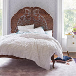 A romantic and elaborate feature piece, the handcarved woodland motif of this wooden bed is like something from a fairytale. Compliment the narrative with lightly embellished linens in a soft palette. The Handcarved Peacock Woodland Bed is more than just a piece of furniture; it's a work of art that adds character and charm to any bedroom.
