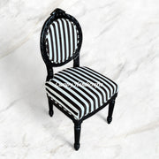This Striped Chair is finely crafted by hand, and features intricate black and white striped fabric for a unique and luxurious look. Built to last, this chair is sure to make a unique statement in any room.