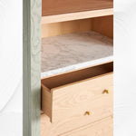 # Ash wood bar cabinet featuring Carrara marble-topped drawers