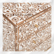 Since the days of ancient Egypt, craftsmen have been using inlaid bone to decorate furniture surfaces, and we have come with a technique to go vegan on that. The leaf's and veins have been made with Teak wood pieces.