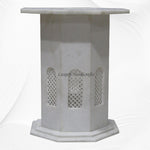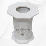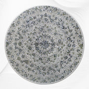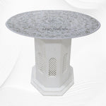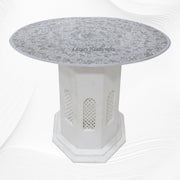 Natural semiprecious stones hand shaped & inlaid in this beautiful Round White Marble Top Coffee Table. This Marble Top Coffee Table catches your eye from every angle. The semiprecious stone inlaid into the White Marble Top Coffee Table is Jasper and Mother of Pearl