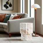 Crafted of Brown marble that has white tones, this stately side table lends a classical element to studies and living rooms alike.