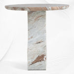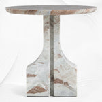 Crafted of Brown marble that has white tones, this stately side table lends a classical element to studies and living rooms alike.
