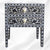 # The bedside table is embellished with bone knobs to complete the look.