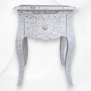 This One Drawer White mother of pearl inlay bedside table by Luxury Handicrafts is a sight for sore eyes. The intricate designs and patterns on the bedside table’s exterior have been handcrafted by our artisans in India.