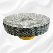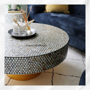 Since the days of ancient Egypt, craftsmen have been using inlaid mop to decorate furniture surfaces, and for good reason: it embodies a natural sheen that adds instant luxury to any space. Handcrafted using the same centuries-old technique at Luxury Handicrafts, this room-anchoring piece captures the essence of inlay work with a reiterative mop inlay design atop a cylindrical brass base.