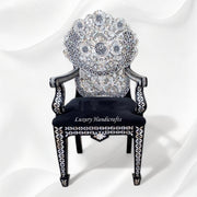 This designer Chair is one of the latest top picks ! This handcarved beauty is certainly a timeless investment, that will add a modern elegance to your home. Perfectly sized to go in your any room. Completed with intricate handmade mop inlay inlay detail.