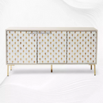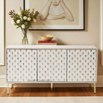 A show-stopping centerpiece for any home, this buffet features hand-inlaid mother-of-pearl doors that lend it an iridescent sheen. Best of all? With two interior removable shelves, it offers ample storage without compromising eye-catching glamour.