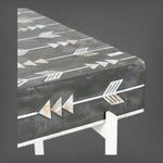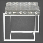 Key Features: # Size: 55 (Length) X 55 (Width) X 60 (Height) Cms. # Designer piece # Mother of Pearl Inlaid neatly in arrow design # Wooden Base with White finish # Made from Solid...